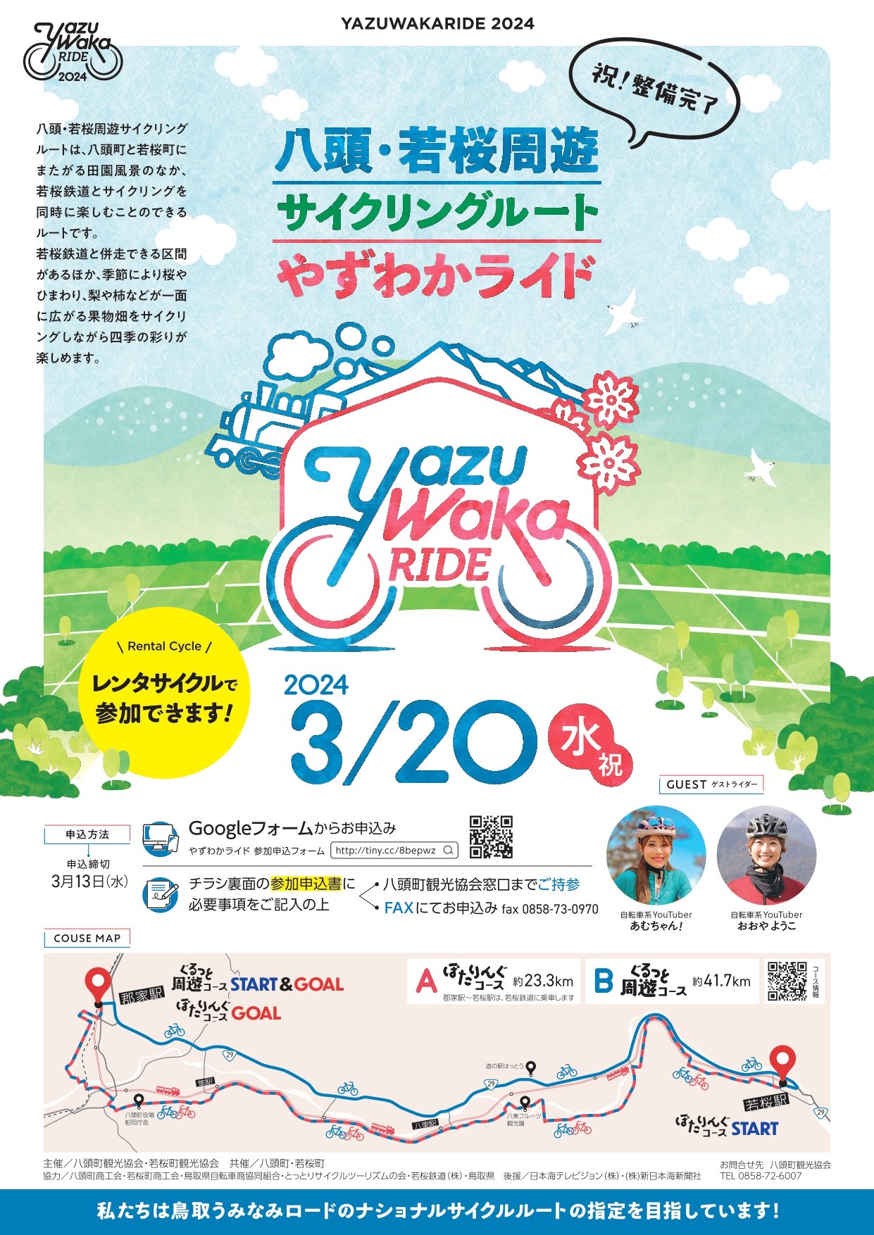 当日は、自転車系YouTuberおおやようこさんとあむちゃん!さんをゲストライダーにお迎えし、八頭・若桜でサイクリングを行います!