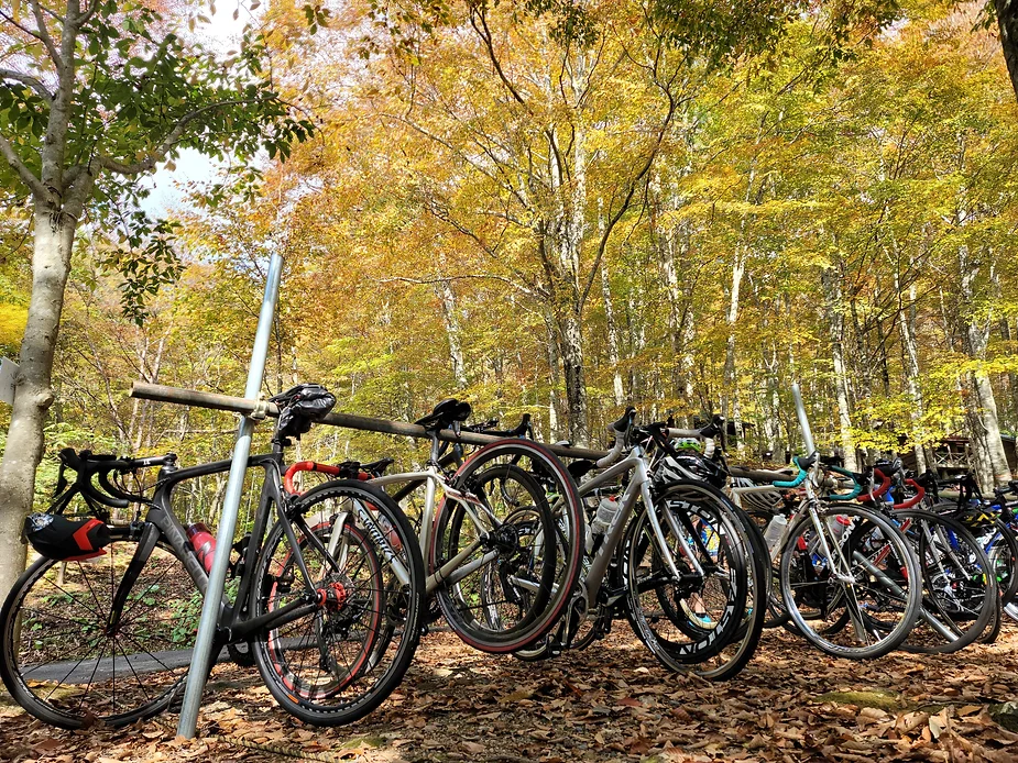 自転車は輪行でバスに乗せます。(輪行袋貸出あります)